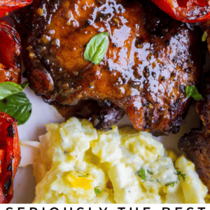 This is my favorite grilled chicken marinade of all time! It’s so simple and only has 6 ingredients (one of them is balsamic vinegar so you know it’s going to be good). Cook up the leftover marinade to make a delicious glaze to drizzle over the chicken after it’s slow grilled to perfection! Originally published July 25, 2018.