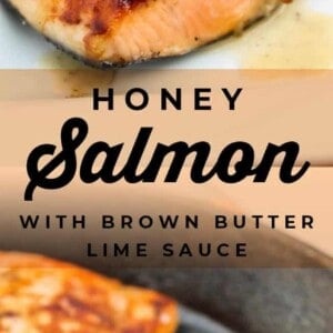 This Honey Salmon with Browned Butter Lime Sauce is the best salmon I’ve ever had, and that includes restaurants. It’s SO easy: pan sear the salmon in a bit of honey, then blend up a simple sauce with lime and brown butter. It’s seriously amazing!