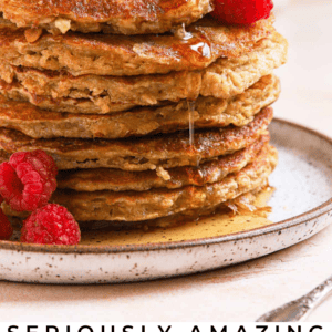 I like to keep my cooked pancakes on a baking sheet in the oven set to warm to keep them toasty before serving. Or serve them up immediately with way too much syrup and some fresh fruit!!