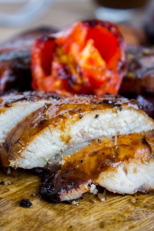 Balsamic Grilled Chicken with Spicy Honey Bacon Glaze: